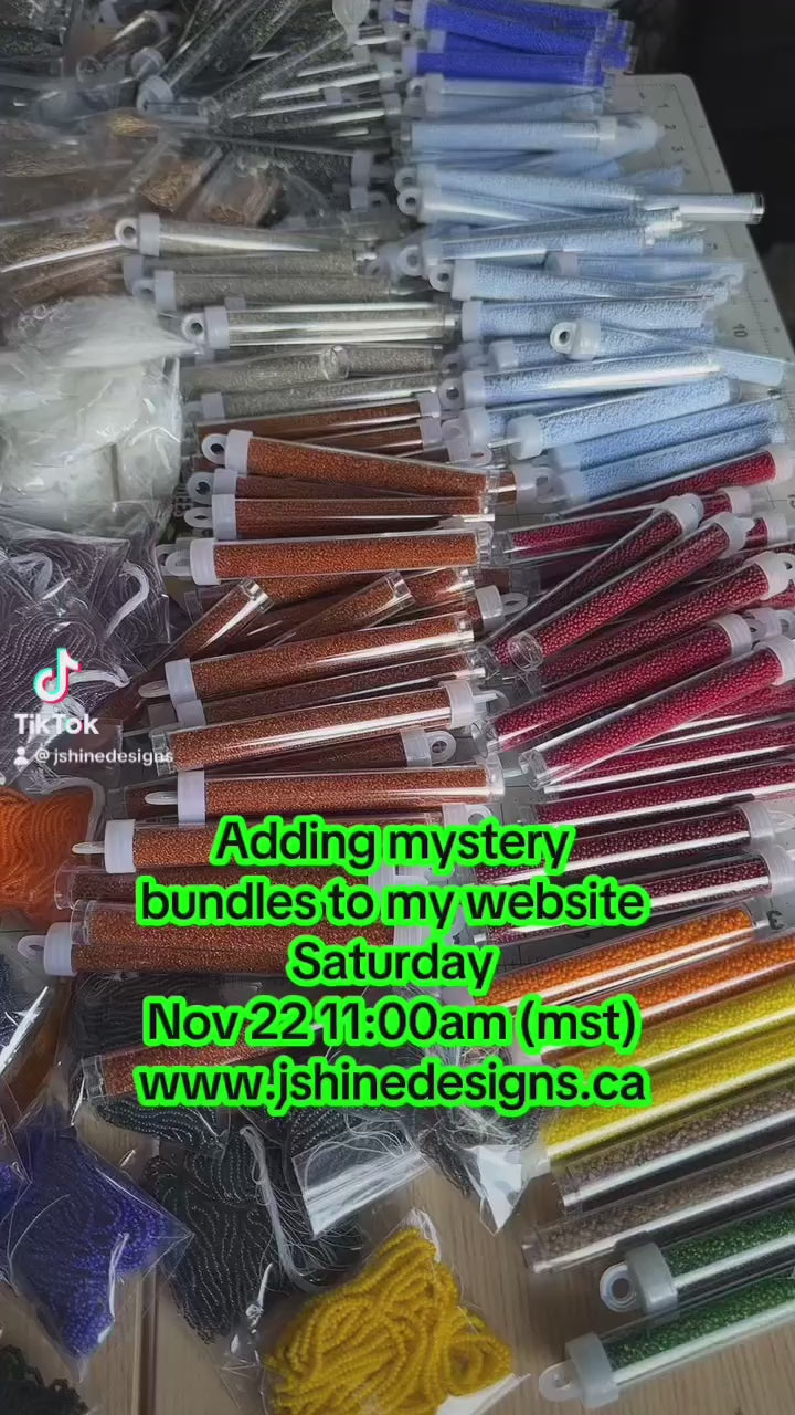 - (4) packs of contemporary* beads 11/0’s Cylin cylinder Seed beads.  These are curated, spruce trees, One bundle has glow-in-the-dark beads, Christmas colours, Neutrals, And reds.  If you want a specific one, please add a note to your order and mention Which curated Spruce tree. I will try my best to accommodate you.